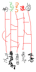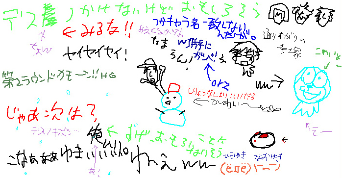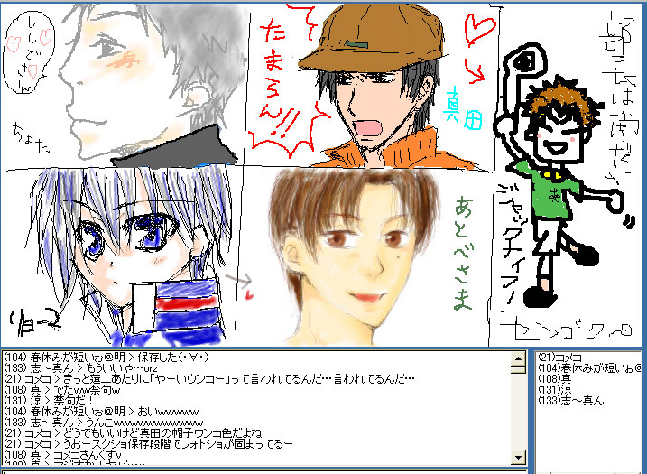 コメコ殿の誘いで俺、明ぽん、真ちゃん、涼ちゃん(マウスで参加)の5人で絵チャりました。