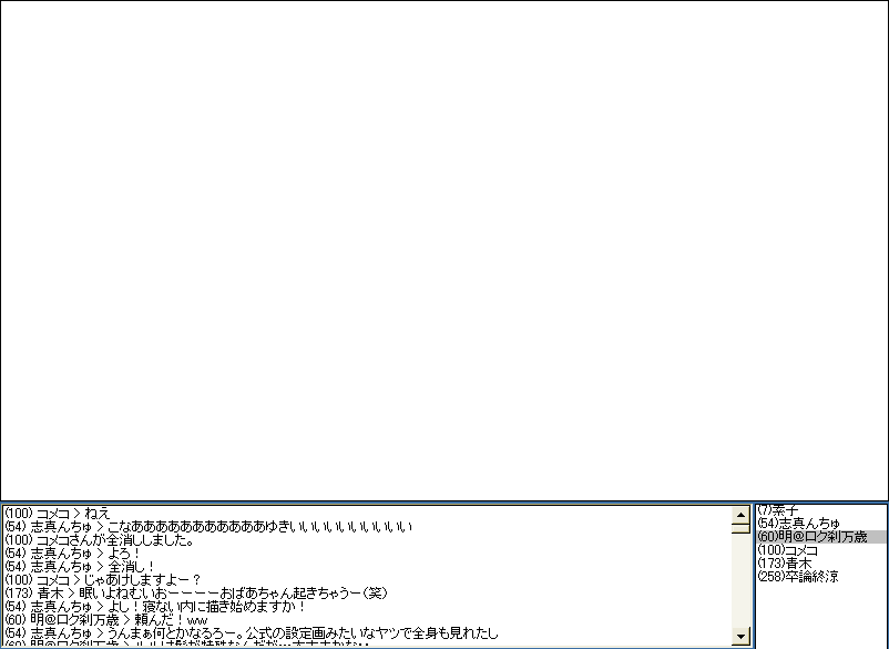 素子(英) 俺(ルルーシュ) 涼(ザックス) コメコ(かがみ) 青木(雲雀) 明(山本)