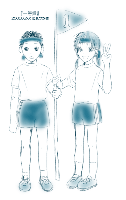 課題で運動会ネタでネームを切るというのがあったんですが、気ィ乗らせる為にこんなにラクガキ描いてしまいました。